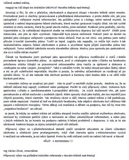 DOPIS VEDENÍ MĚSTA