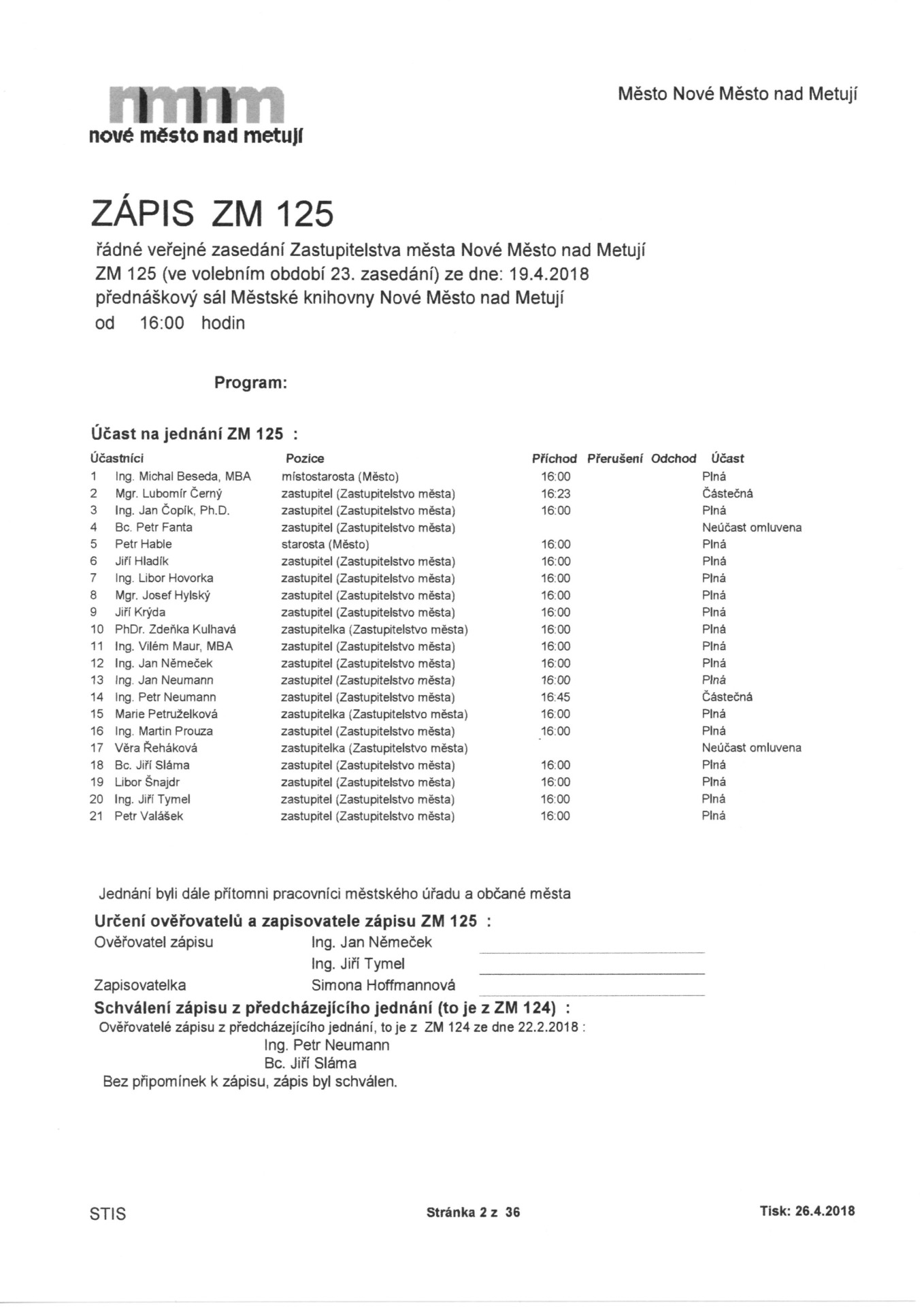Jména Zastupitelů schvalujících prokorupční nový územní plán Nové Město nad Metují
